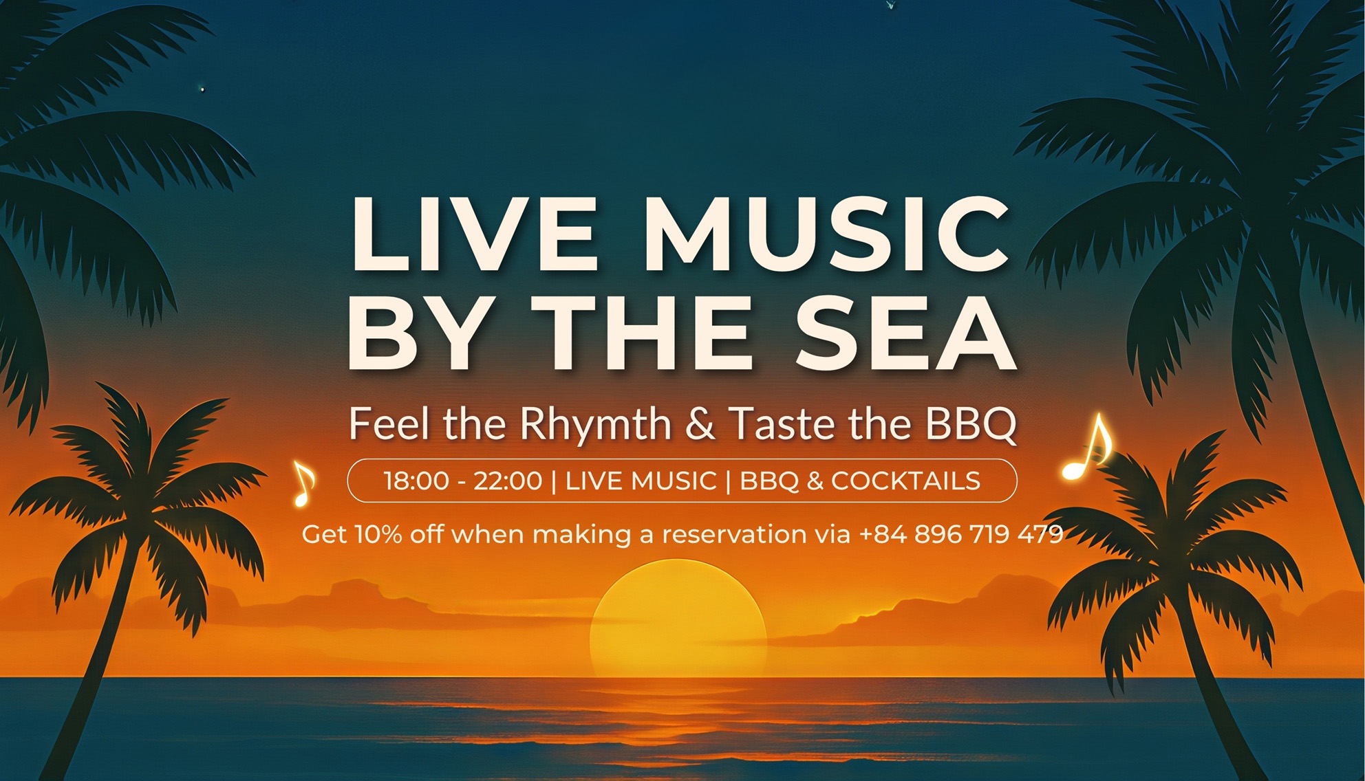 Enjoy 10% off Live Music & BBQ nightly when reserving in advance via hotline +84 896 719 479